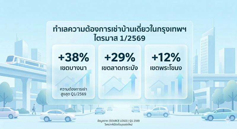 ทำเลในกรุงเทพฯ ที่มีความต้องการเช่าบ้านเดี่ยว เติบโตมากที่สุดในไตรมาส 1/2569