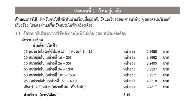 อัตราค่าไฟฟ้าบ้านอยู่อาศัย (ประเภท 1)